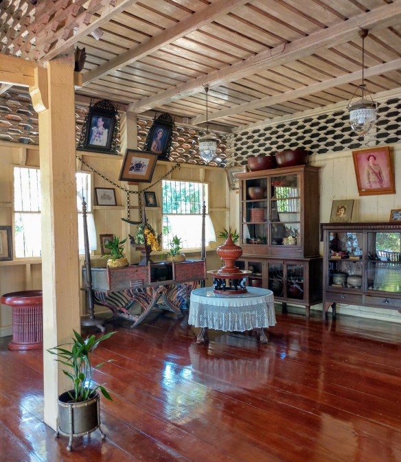 We hebben onderweg al veel teakhouten paalwoningen gezien. In Lampang is er de mogelijkheid om een traditioneel Thais huis uit 1895 te bezoeken. De inrichting is nog compleet. Het lijkt of de bewoners even een boodschapje doen, en elk moment weer terug kunnen komen. Bij deze huizen is er geen strakke begrenzing tussen binnen en buiten. De ruimtes zijn open en voorzien van ventilatieroosters, waardoor het aangenaam koel in het huis blijft.We zijn de enige bezoekers, waardoor we er ongestoord rond kunnen lopen. Na ons bezoek krijgen we in de ruimte onder het huis een glas tamarindesap aangeboden. Toen we wilden vertrekken arriveerde er een bus vol toeristen die meteen het huis bezetten. Wij hebben de mazzel gehad dat we hen net voor waren en de sfeer van het huis niet met 40 anderen hoefden te delen