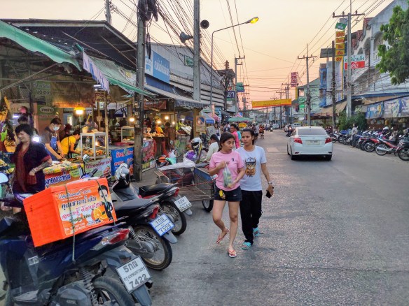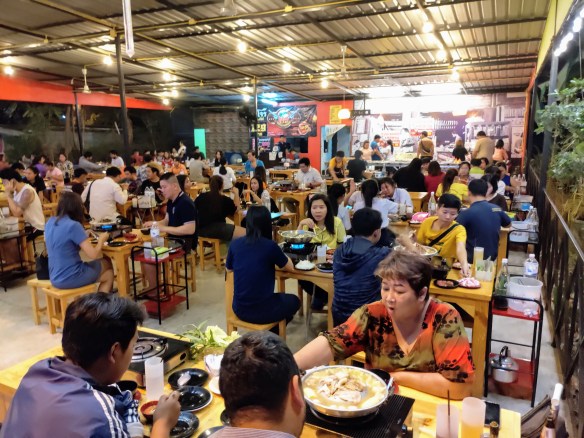 Aa-hāan-sjáaw; ontbijt. En dat is anders dan het ontbijt dat we gewend zijn. Rijstsoep, met een gebakken eitje en wat peterselie. En soms noodles of rijst met groente en stukjes vlees. Stukjes watermeloen of papaya. Glaasje sap en een kopje koffie. Een goede start van de ochtend.