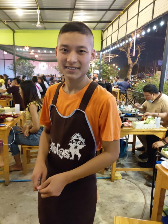 Vandaag lunchen we in een tentje aan het pad langs de rivier. Kip met sticky-rijst uit een klein zakje. Noodles zijn niet geschikt voor ons. Too spicy… Maar de kokkin weet nog wel een ander schoteltje, dat kan minder spicy worden gemaakt.