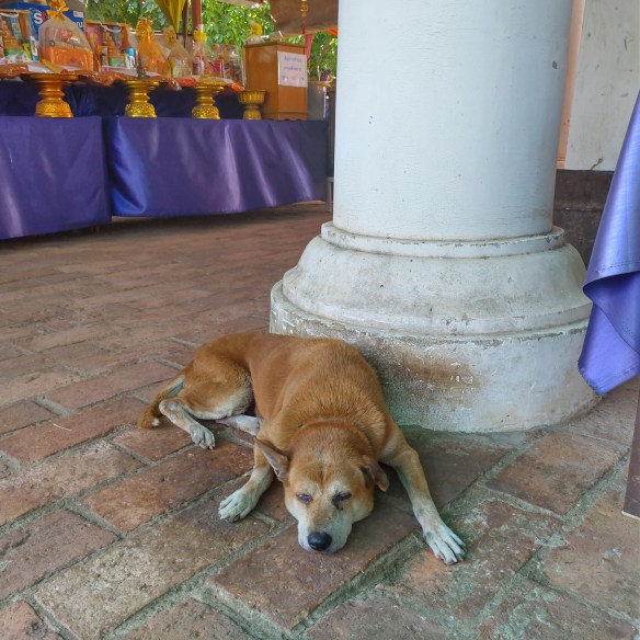 Zo lui als de honden, hier overal in Ayutthaya, zo lui kun je hier zelf ook zijn. Het is hier groen en overal hoor je vogelgeluiden. Er zijn ooievaars en reigers bij de rivieren. Er rennen eekhoorntjes over de takken van de bomen. Gisteren zagen we tussen de bladeren van de Lotus een varaan zwemmen.