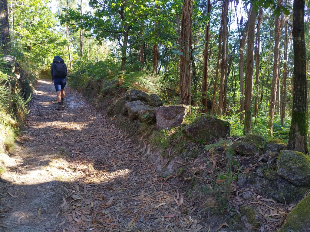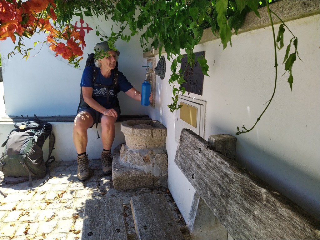 The walk was immediately beautiful, more pleasant than yesterday. We walked on smaller roads and paths, with more shade. The eucalyptus trees smelled wonderful. Occasionally there was a water point. We had the feeling that we were now really walking on the caminho.
