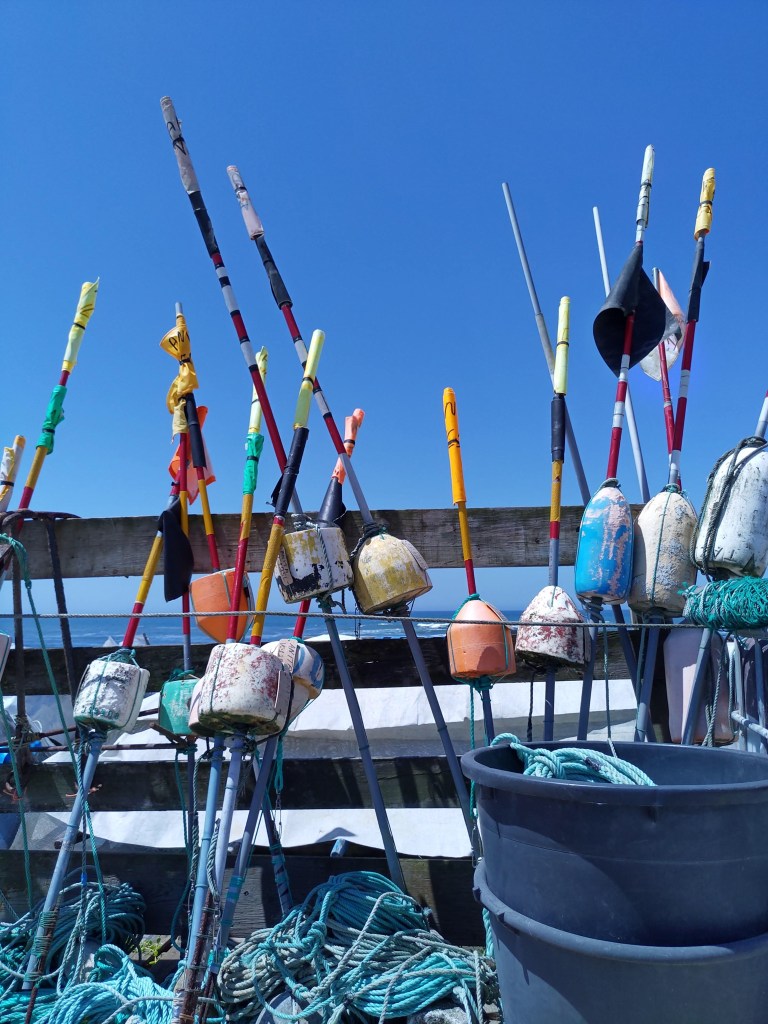 A few times we passed a fishing village with colorful houses and fishing gear.