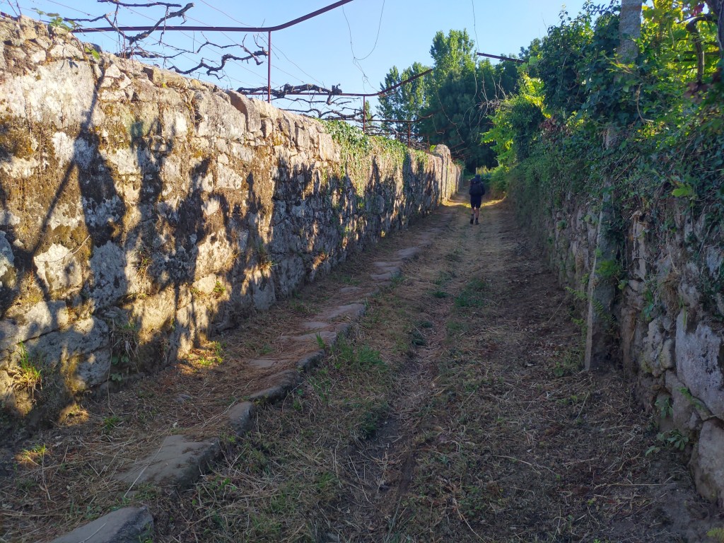 This morning we walked over the medieval bridge over the Rio Lima. It was the start of a beautiful route to Rubiães. It was hot, but the trails were green and shaded. And after 7 km there was a nice spot for a delicious coffee grande with an Italian lady. On the way we met a young woman from Germany. It turned out that she had rented a room in the house next to the one where we are staying. Both houses are about 2 km outside the village where there is a restaurant. The owner of the restaurant came to collect the three of us after a phone call for the pilgrim’s meal. We had a nice meal together. Later we were also neatly driven home by the restaurant owner. Beautiful right?