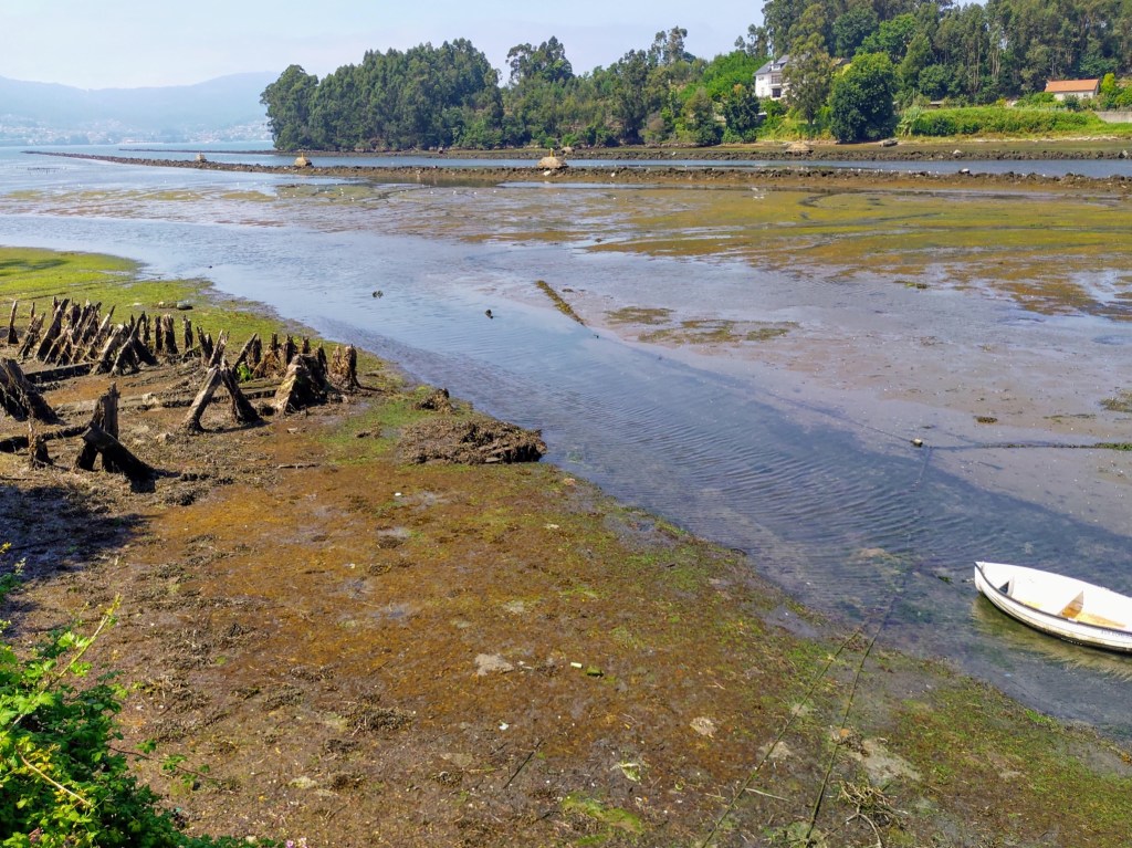 We have a nice room in a steep street in the older part of the city of Redondela. After checking in, we walk to the river near the sea. It’s ebb.