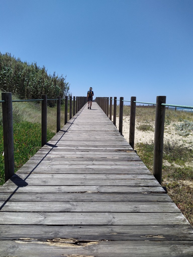 The path along the coast runs largely on a plank over the beach or through the dunes.
