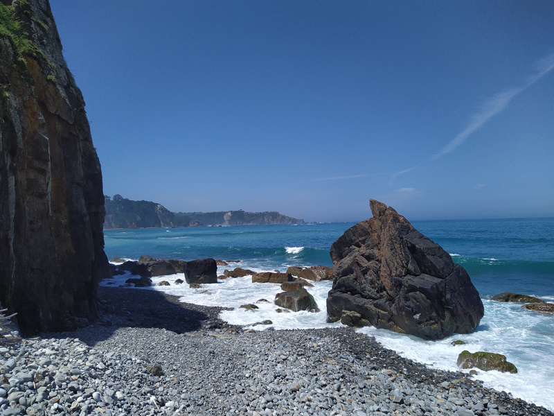 Walking the Camino del Norte is walking along the ocean, along the Bay of Biscay, or in Spanish the Golfo de Vizcaya. The vastness, the infinity of the ocean, and the light attract us. The coast on the north side of Spain is rugged with cliffs and coves. The influence of the water on the stone of the rocks, over the centuries, is visible everywhere. The ocean is deep (4 km) and is the habitat of dolphins, sharks and whales.