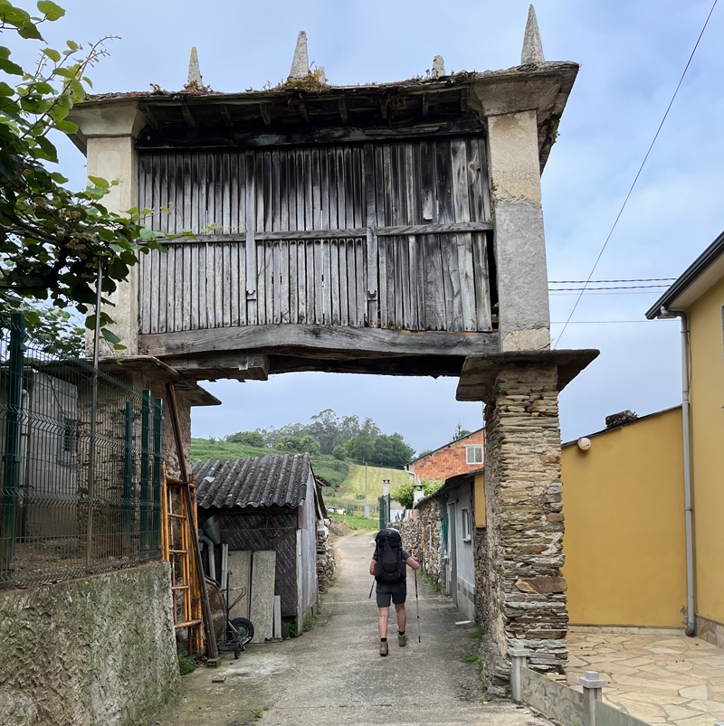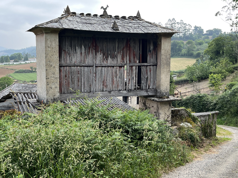 In Galicia you see the horreos everywhere, the storage sheds on stilts. They are used for storing corn, among other things. The flat stones are protecting the crop against vermin.