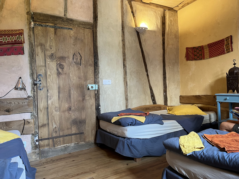 Most people sleep in a dormitory; a room with several beds. But most gites also have smaller rooms. The guests eat dinner together. The food is usually very good and more than enough.