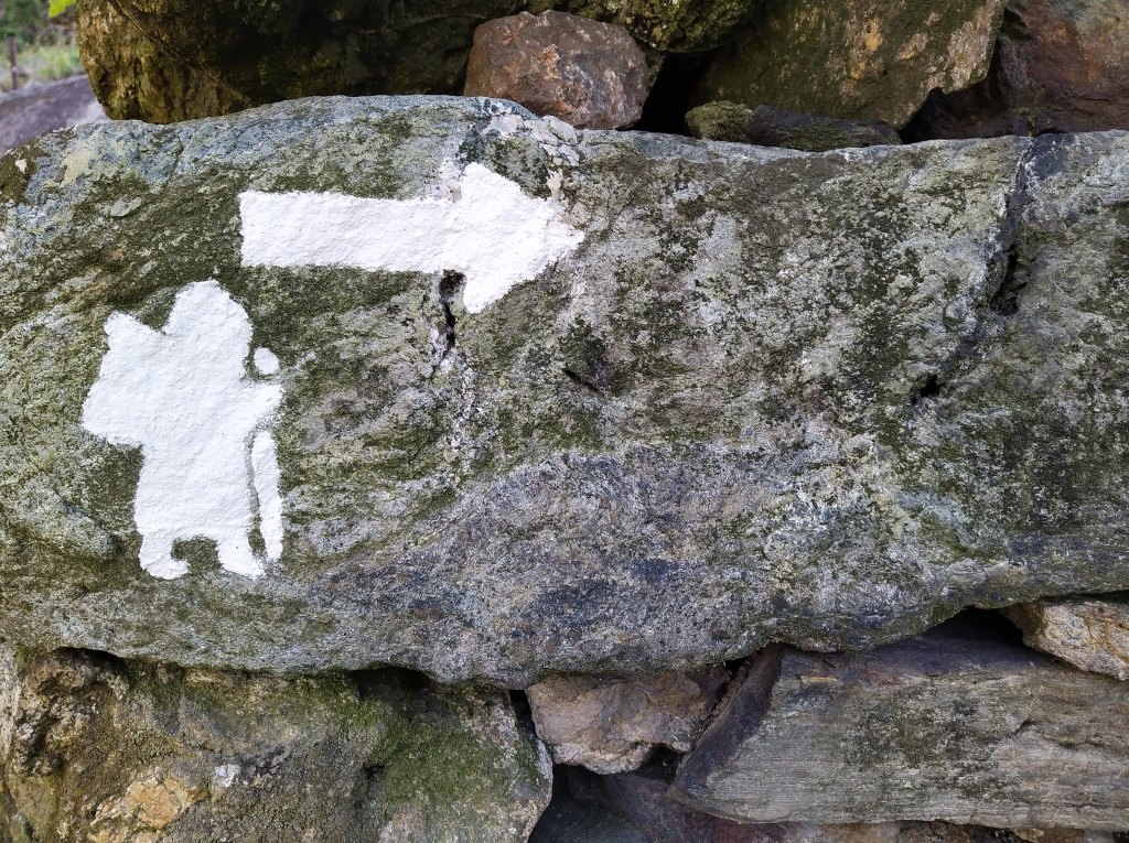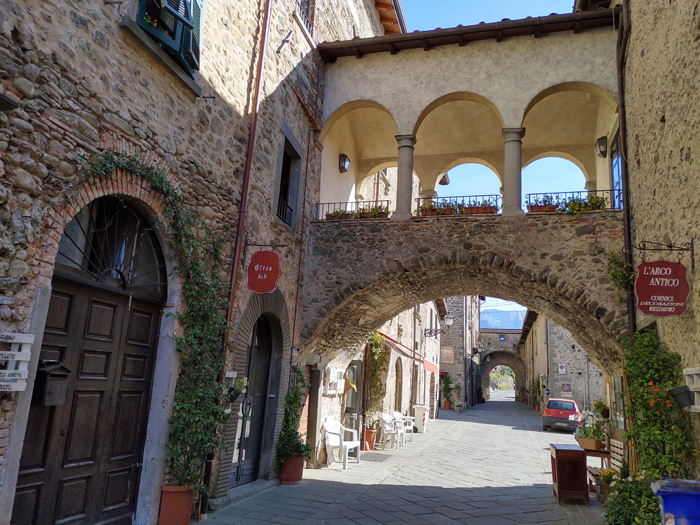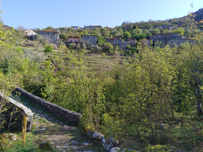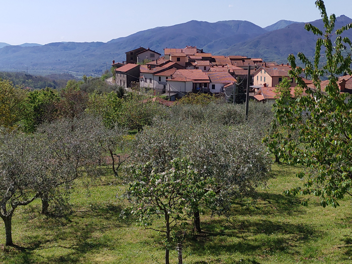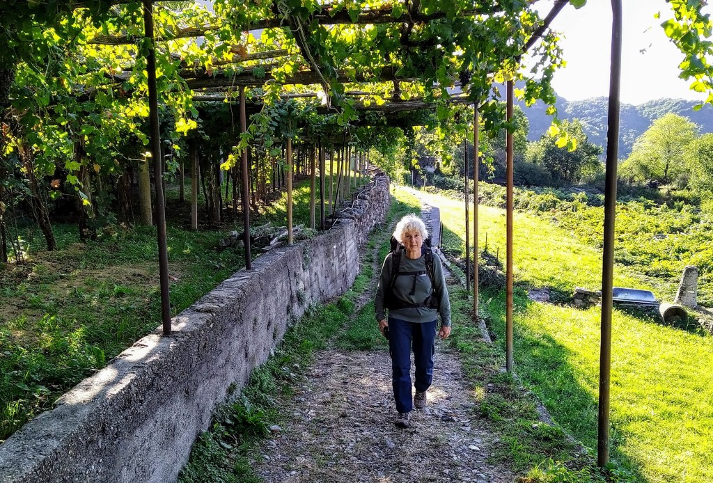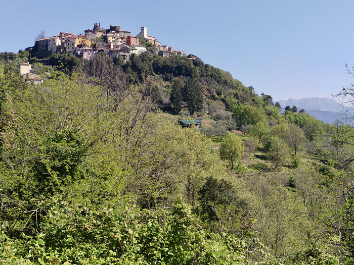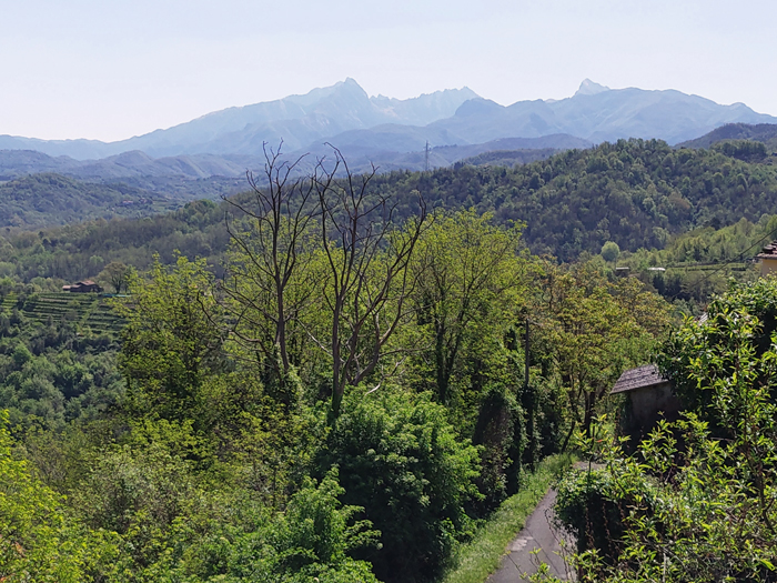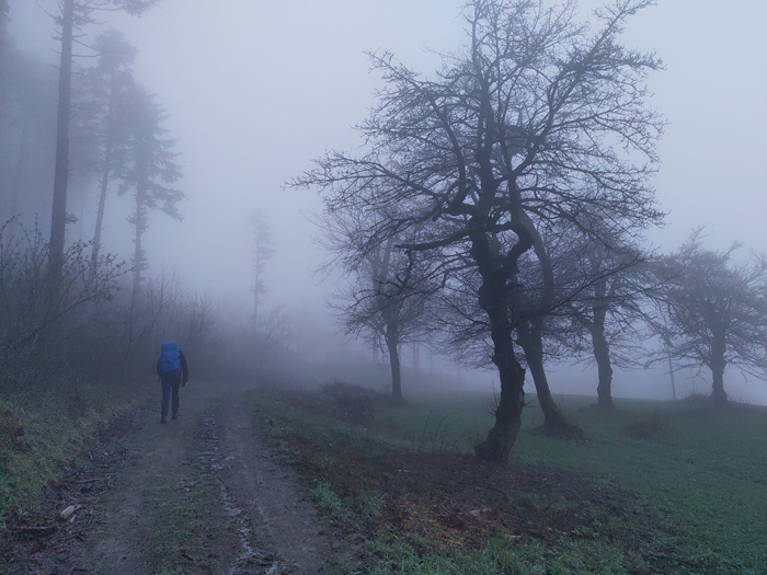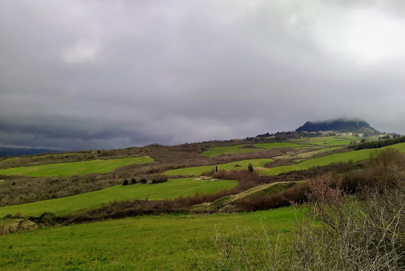 The next morning we left in the fog. As we descended dark clouds appear. Via a winding ‘strada’ we walked down. Fortunately it stayed dry for a long time.