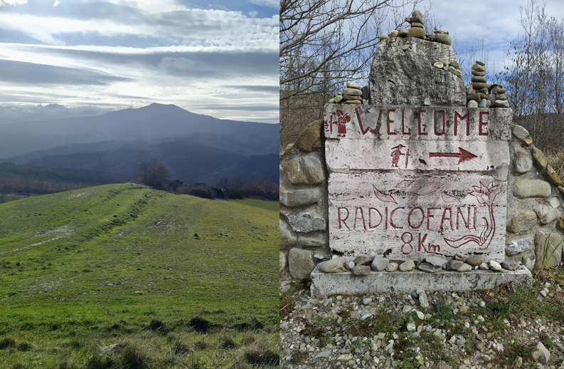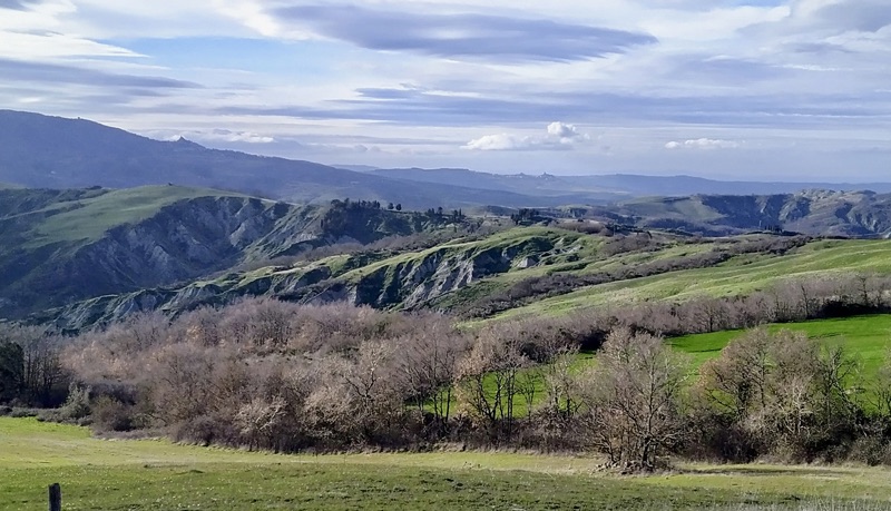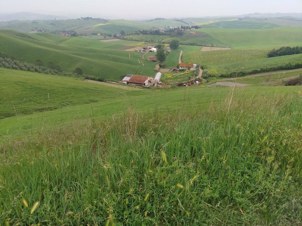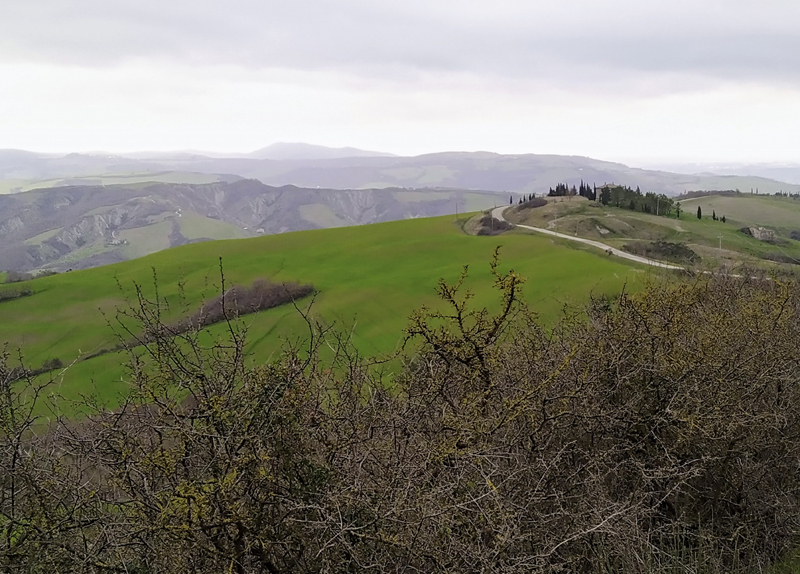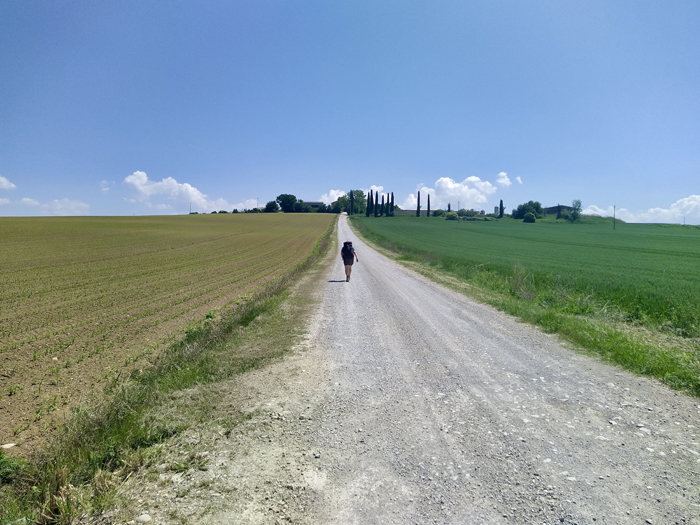 After a nice breakfast we left for Radicofani, about 28 km away. A long walk. and we already saw the town in the distance when we left; high on the mountain. The walk went out through an empty and rolling landscape. .